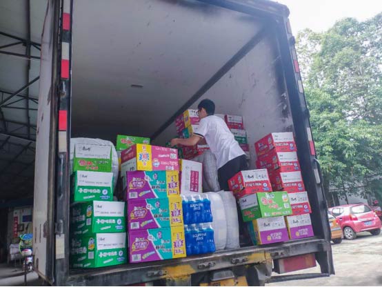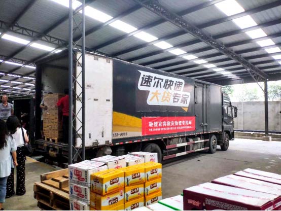 當天上午9:00,由四川省婦聯(lián)籌措的愛心救援物資,包括300床救災棉被、500件牛奶(每件24盒)及500件方便面(每件12桶),裝上速爾快遞9.6米的愛心物資專用車;同時,速爾快遞也為災區(qū)捐贈了礦泉水和方便面等物資,為救災工作增添一份力量。11點,愛心物資專用車從成都出發(fā),開往宜賓市珙縣、長寧縣抗震救災點。