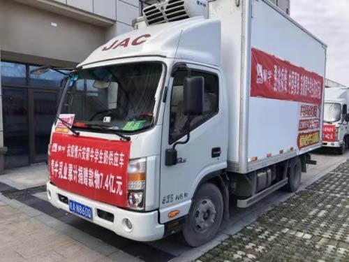 江淮愛心先鋒隊招募的消息一經發出就反響強烈,蒙牛乳業在此次疫情中,捐錢捐物,累計為疫情捐贈款物7.4億元,蒙牛安徽區域代理商在得知江淮輕卡成立了愛心先鋒隊后,與當地江淮輕卡人員獲得聯系,當地江淮愛心先鋒隊立即響應,配合蒙牛乳業向安徽省六安市教體系統運送了KN95型口罩1000只、蒙牛學生奶1000件、紅外線額溫槍100把、過氧乙酸消毒液100桶等眾多物資,輸送至六安市整個教育系統,用于教育系統防疫工作。
