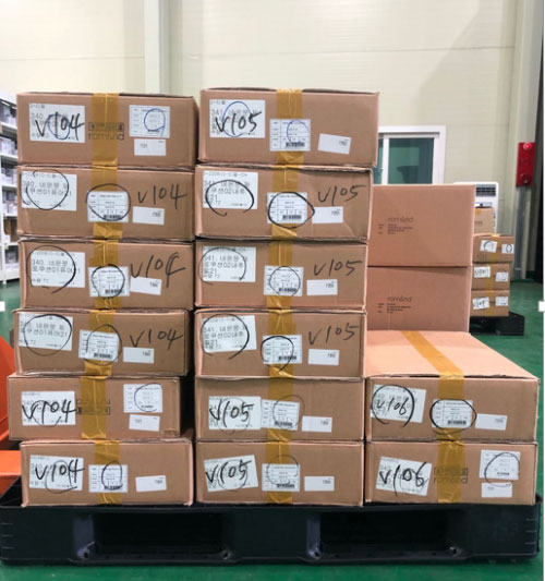 (貝海國(guó)際速遞仁川倉(cāng)庫(kù)內(nèi)打包好的“ROMAND”)
