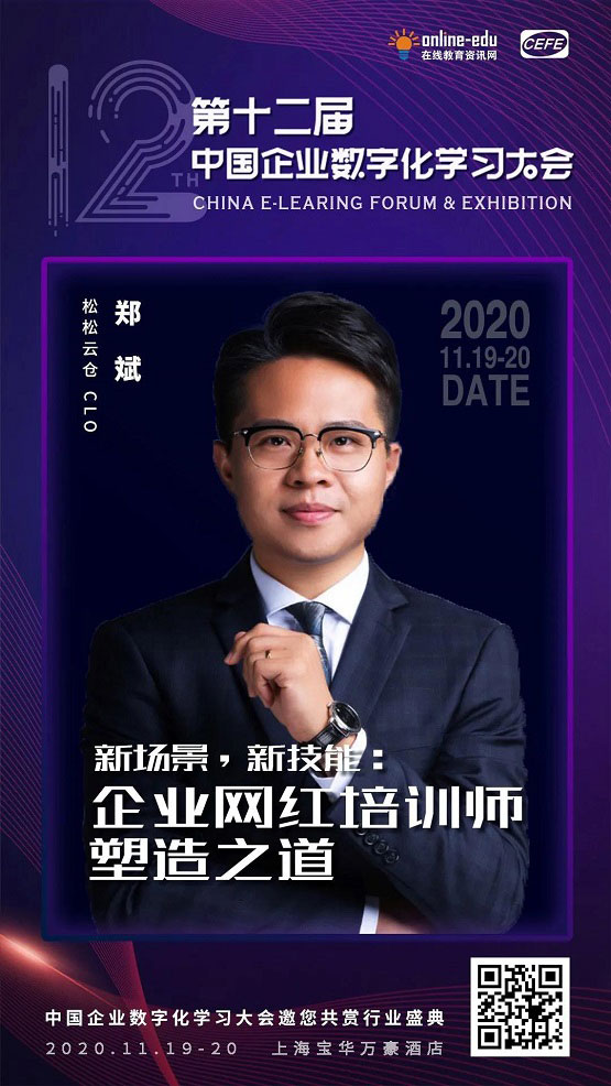 在中國企業數字化學習大會上,松松集團CLO鄭斌分享了《新場景、新技能,企業網紅培訓師塑造之道》,以當下直播大火為切入點,引入企業培訓師需要掌握的直播授課技術,解析了品牌營銷與人設塑造的聯系,通過軟硬件的數字化運用和技術呈現,使得直播培訓傳遞更多溫度、綻放更多熱情,點亮更多生命。