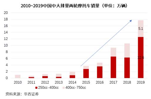 在摩托車市場面臨下行壓力之際,摩托車市場迎來轉(zhuǎn)型期。中汽協(xié)數(shù)據(jù)顯示,我國仍然是全球第二大摩托車市場,2019年產(chǎn)銷超過1700萬輛;得益于我國居民消費水平的提升,摩托車的主要用途正逐步由代步工具/生產(chǎn)資料向休閑、娛樂功能轉(zhuǎn)變,產(chǎn)品升級快速推進,自主、合資品牌車型不斷涌現(xiàn),平均價格顯著提升;特別是250cc排量以上的中高端摩托車銷量正在急速增長,成為了摩托車市場細分領(lǐng)域的香餑餑。