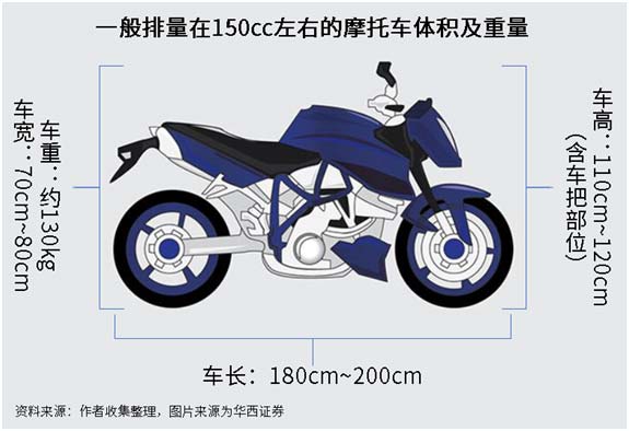 一臺排量在150cc的摩托車重量大概在130kg左右,車長在180cm~200cm左右,寬度70cm-80cm左右,高度(車把部位)一般在110cm-120cm左右。雖然摩托車有一定的木架、編織袋等包裝保護,但摩托車的大重量、大體積與不規(guī)則的外形,使得摩托車在搬運過程中基本都需要叉車進行操作,并小心輕放,防止在搬運過程中出現(xiàn)不必要的磕碰或其他貨損發(fā)生,對物流公司的操作專業(yè)性要求較高。