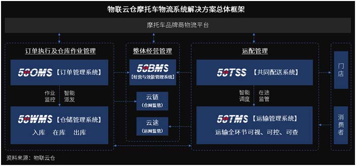 針對以上提到的摩托車物流中的特定需求特點來看,目前市場上已有物聯(lián)云倉此類提供摩托車智慧物流解決方案的服務(wù)案例能夠作為行業(yè)參考,以啟發(fā)摩托車行業(yè)的物流智慧化升級變革。