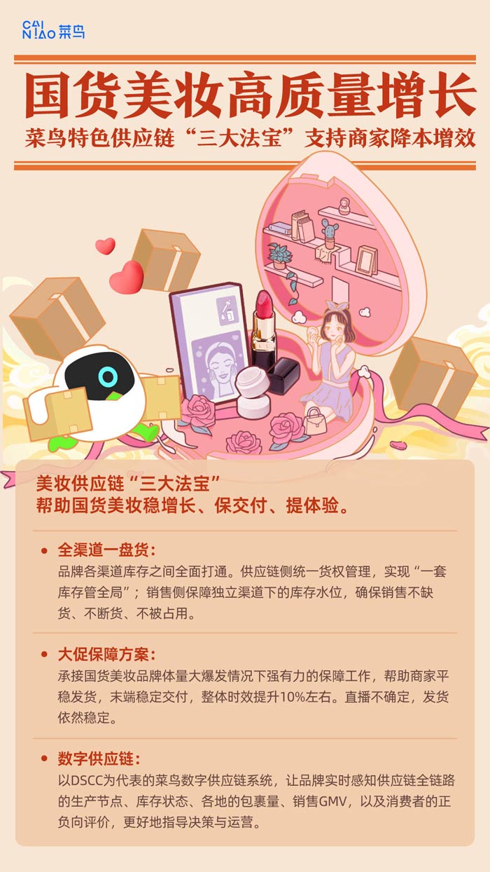 日前,記者獲悉,菜鳥面向國貨美妝品牌商家推出了特色供應(yīng)鏈“三大法寶”,幫助國貨美妝穩(wěn)增長、保交付、提體驗(yàn)。