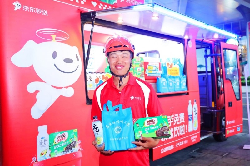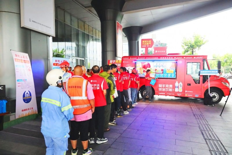 京東秒送聯合多品牌推出流動“冰飲車”,向戶外勞動者免費派發數萬份防暑物資
