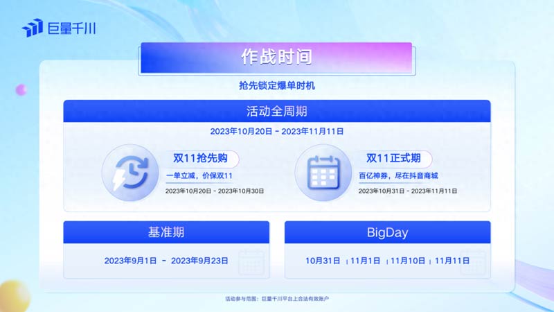 在今年的雙11好物節(jié),巨量千川采取了一系列大動(dòng)作,整合了多款產(chǎn)品組合、豐富多樣的活動(dòng)玩法和海量的紅包獎(jiǎng)勵(lì)等,幫助商家搶先爆單,全局拓量,拉滿戰(zhàn)力值,實(shí)現(xiàn)生意騰飛!