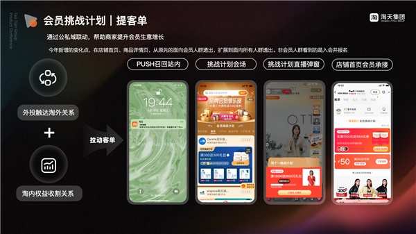 3、公私域聯動提升會員進店:會員挑戰計劃將在猜你喜歡、搜索、店鋪等場域聯動露出,帶來更多進店和轉化。