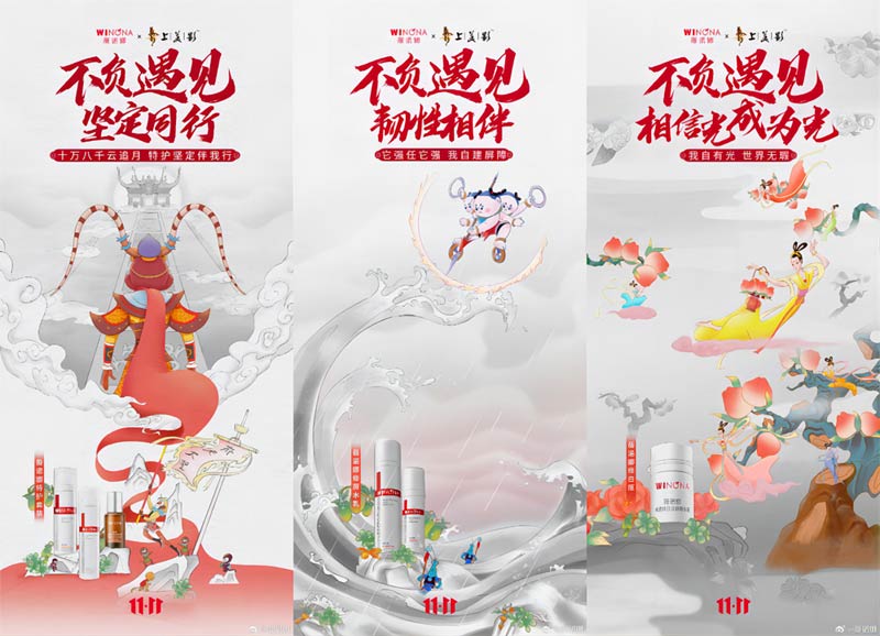 今年雙十一期間,薇諾娜聯合上海美術電影制片廠打造了《遇見大圣》《遇見哪吒》《遇見七仙女》三部聯名TVC,借經典動畫形象映射現實生活中的人物原型,傳遞堅持、韌性、相信等品牌內核,真誠地展現了薇諾娜與每位用戶并肩同行,不負遇見的初心。
