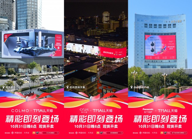 10月31日,天貓雙11第一波正式開賣。天貓攜手COLMO、松下、歐詩(shī)漫,點(diǎn)亮南京杭州雙城,預(yù)告雙11精彩即刻登場(chǎng),拱熱大促開賣氛圍。