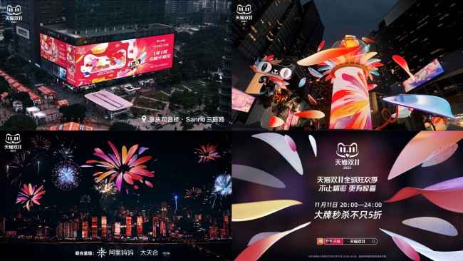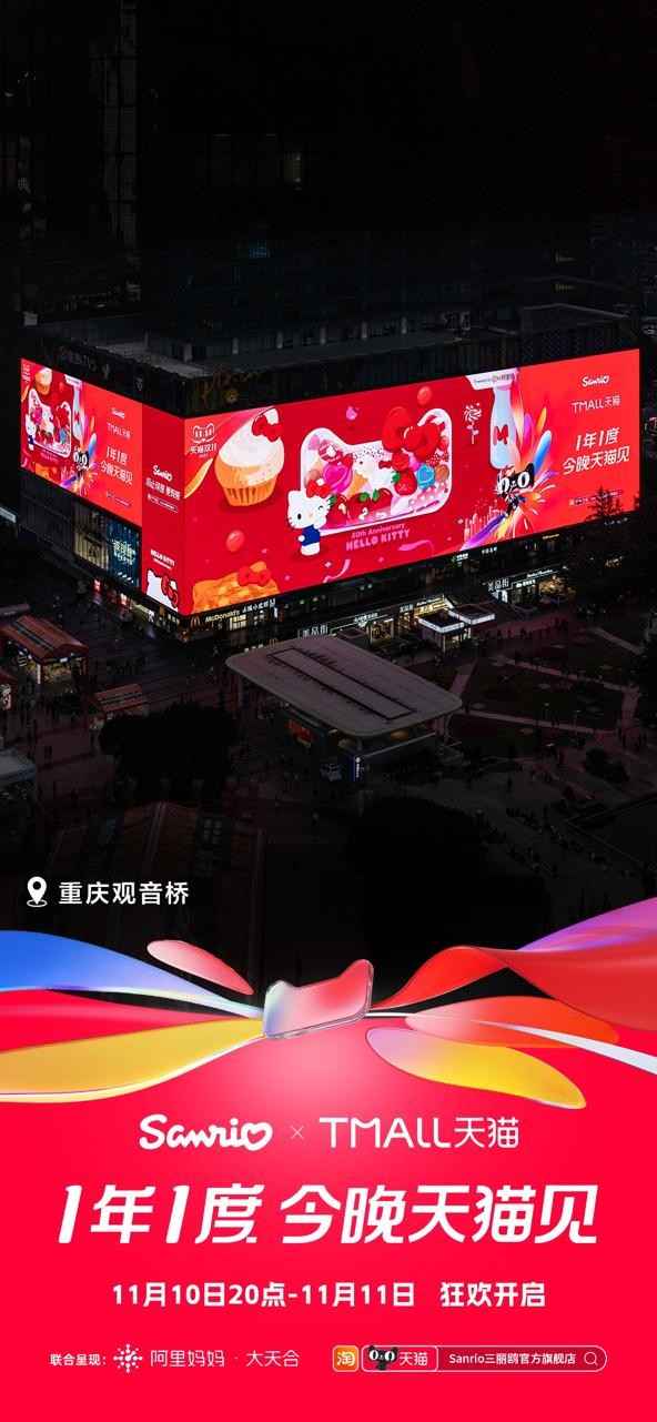 11月10日,一年一度的天貓雙11前夜。天貓攜手三麗鷗壓軸點(diǎn)亮重慶觀音橋地標(biāo)。邀約共賞當(dāng)晚的雙11狂歡之夜。
