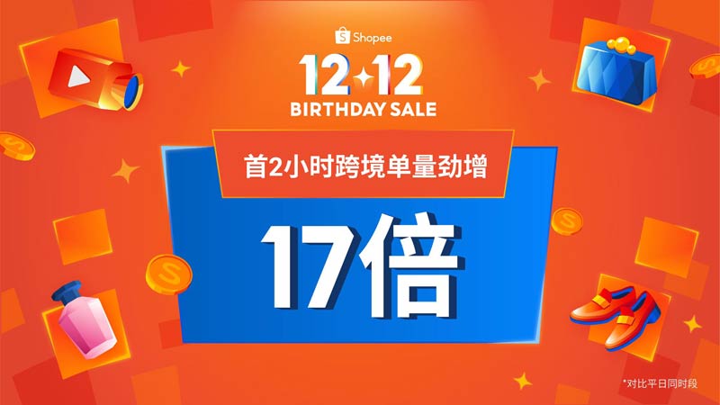 Shopee 12.12生日大促開場,首2小時跨境單量勁增17倍