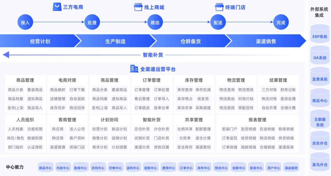 云徙科技全渠道一盤貨,實踐多年,通過8大核心功能,幫助各大消費企業重掌供應鏈命脈。