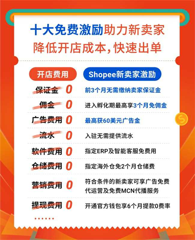 翻看Shopee2024十“全”十“免”政策,新賣家不僅可享受免開店費(fèi)用入駐,還將獲得Shopee官方的多項(xiàng)新賣家激勵(lì)扶持,包含前3個(gè)月免保證金、最高3個(gè)月免傭金、最高獲60美元廣告金免費(fèi)送等福利,幫助賣家實(shí)現(xiàn)生意的快速起步。