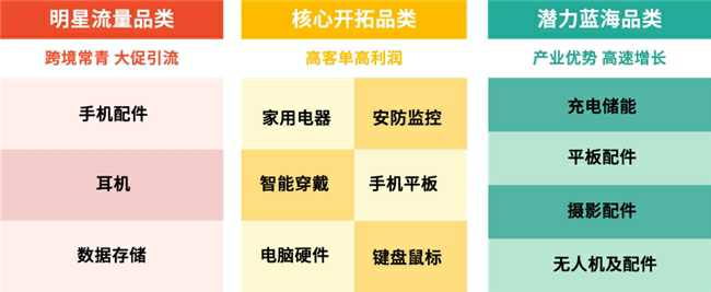 目前,Shopee上消費(fèi)電子品類需求大而全,新賣家可以根據(jù)自身情況切入細(xì)分賽道。手機(jī)配件、耳機(jī)、數(shù)據(jù)存儲(chǔ)等產(chǎn)品需求充足,適合大促引流;高客單價(jià)高利潤的品類包括家用電器、安防監(jiān)控、智能穿戴、手機(jī)平板、電腦硬件、鍵盤鼠標(biāo),適合新賣家作為核心品類開拓;需求高增長的潛力品類包括充電儲(chǔ)能、平板硬件、攝影配件、無人機(jī)及配件,為新賣家營造了前景可觀的增長空間。