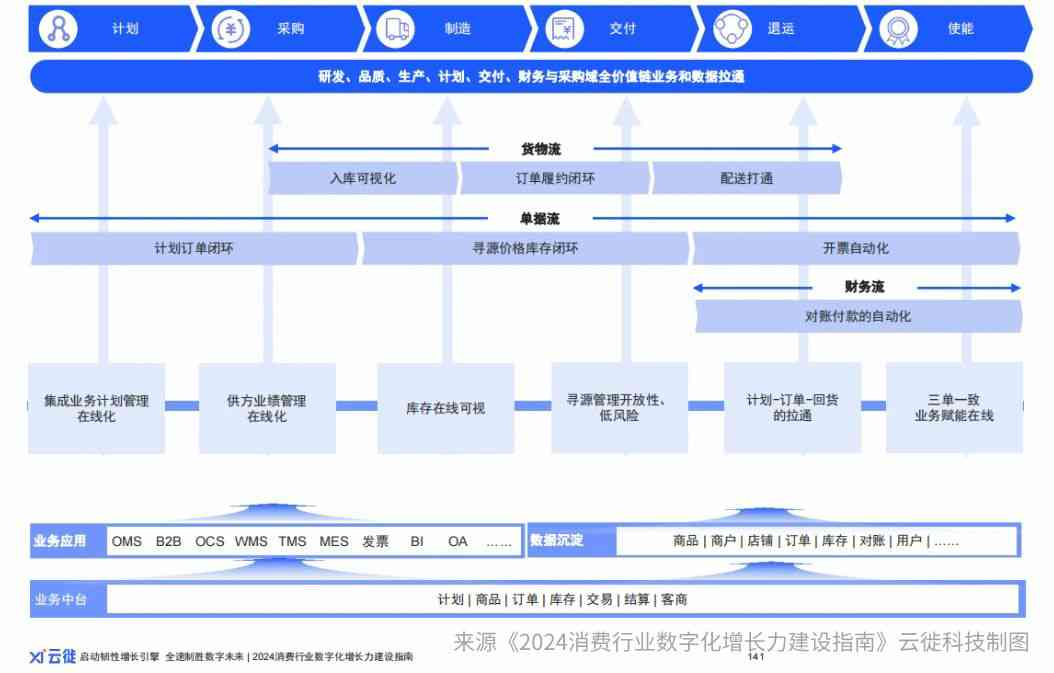 需要實現的目標是建立供應鏈全鏈路的業務觸點,實現單點貨、單和財數據匯集,為后續業務一體化和運營數字化打下基礎。節點在線化可以提高供應鏈的單點數據質量和可視性。可解決的問題是單個業務應用的管理機制構建。