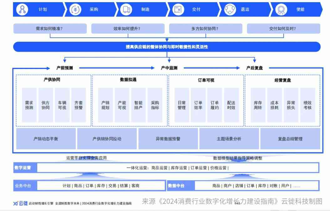 供應鏈上下游協同與智能決策是基于整體供應鏈敏捷性和靈活性需求,基于產銷協同目標和問題導向出發,對整體供應鏈運營形成預測、監測和復盤供應鏈決策智能機制。