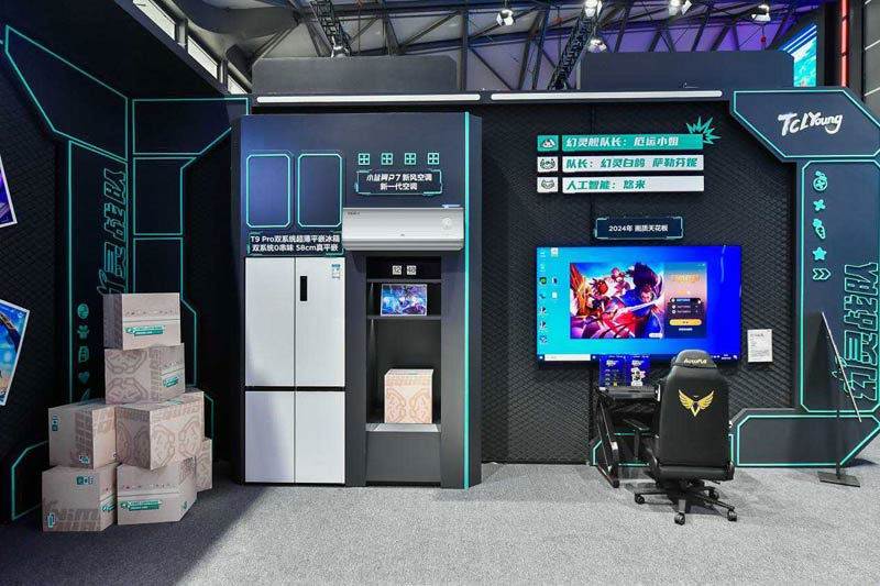 在TCL展區,巨幕互動與虛擬現實技術巧妙結合,創造出一個充滿互動性和沉浸感的次元視界。展區內,英雄聯盟元素隨處可見,從作戰休息室到電競對戰區,每一個角落都充滿了游戲的激情與科技的創新。此次與英雄聯盟的跨界深度聯動,不僅展示了幻靈戰隊的新皮膚,還為觀眾帶來了新PVE模式游戲“無盡狂潮”的獨家體驗。
