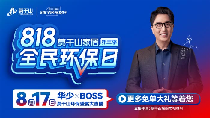 首先是“環保家裝 0元升級”活動,凡在8月1日-18日活動期間購置板材,可0元升級植物源抗菌板(不限基材,不限花色,不限風格);購置全屋定制/地板,可享受0元升級同系ENF級。此外,還推出了“0元搶千萬環保補貼”和“百萬超級免單大禮”活動。(活動請詳詢線下門店)重頭戲還在后面,8月17日,華少×BOSS莫干山家居環保盛宴直播即將盛大啟幕,帶來超震撼的重磅福利。