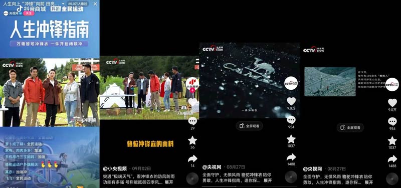 此外,抖音商城x央視網(wǎng)x駱駝攜手打造紀(jì)錄片式短視頻。從雪山“蜘蛛人”的生活出發(fā),既展示出駱駝沖鋒衣產(chǎn)品全面守護(hù)、無懼風(fēng)雨的卓越性能,也傳遞出守護(hù)環(huán)境,與自然共生共存的品牌價(jià)值。同時(shí)活動(dòng)中還通過戶外直播的形式,攜手央視網(wǎng)主持人曹煊一、電商達(dá)人田亮、行業(yè)專家羅靜、雪山工作人員呂皓葳等嘉賓,分享戶外精神、傳播戶外知識(shí)、展現(xiàn)產(chǎn)品性能,全場直播曝光超550萬,觀看人數(shù)近百萬,獲得超過44萬的點(diǎn)贊。