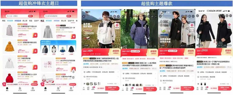 為了幫助品牌促成交易,抖音商城疊加了今日主推、爆款盤點(diǎn)等玩法,它們有效承接了搜索帶來的流量,一大批爆品在活動(dòng)中誕生。在抖音商城「今日主推」增量實(shí)時(shí)排行榜,用戶可以一眼了解沖鋒衣品類排名靠前的店鋪,強(qiáng)化優(yōu)質(zhì)店鋪心智。在「超值購」板塊,抖音商城上線了“沖鋒指南”選項(xiàng),盤點(diǎn)了400款優(yōu)價(jià)沖鋒衣,打造超值購品類主題日,把爆品主動(dòng)選給用戶,誕生了多個(gè)百萬/千萬級(jí)爆品。