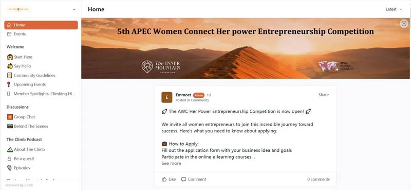 同時(shí),她山還在CIRCLE平臺上啟動(dòng)了全球在線社區(qū),為成員提供多樣化的成長支持,包括播客、自我反思練習(xí)、TEDx演講等,并定期舉辦中美連線活動(dòng),助力女性提升職業(yè)技能和個(gè)人成長。在這里,她山Inner Mountain 不僅是一個(gè)名字,而是創(chuàng)變者共同成長與創(chuàng)造變革的精神家園。為一個(gè)國際非盈利組織,她山一直致力于幫助每一個(gè)追求自我成長的同頻者。