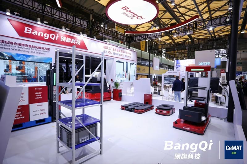 磅旗科技移動機器人矩陣重磅登場,包含潛伏機器人、移/重載機器人、叉取機器人、料箱機器人等系列產品,集全球前沿技術與磅旗自研智造兩者之所長,融卓越性能、出眾品質與性價比于一身,一經亮相便成為本次展會的吸睛利器。