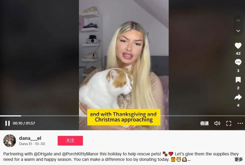 此次黑五大促期間,敦煌網集團與致力于社區流浪貓救助的非營利組織Porch Kitty Manor(PKM)共同發起愛心捐贈活動,也為平臺商家帶來了千萬站外流量。自成立以來,PKM通過TNR計劃、救助與領養、臨時寄養及教育等方式改善貓咪生活。本次合作不僅提供捐助通道,更通過折扣商品支持救助站需求。海外用戶只需通過DHgate平臺上專屬捐贈頁面下單,所購貨品將直接發送給PKM救助站,為流浪貓送去關愛和溫暖。敦煌網集團希望用行動匯聚愛心,與全球用戶一起助力流浪貓獲得美好的未來,也為中國的優質寵物用品商家打開更廣闊的藍海市場。
