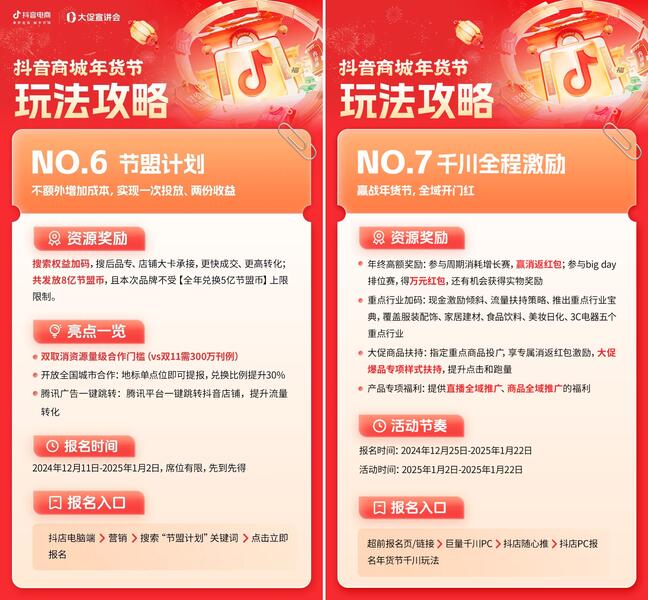 抖音商城年貨節是商家集中展示產品力和品牌力的重要營銷節點,目前已經正式啟動,玩法招商火熱報名中!期待每一位商家和達人都能充分利用這次機會,實現新一輪的生意爆發。 (編輯:楊艷)
