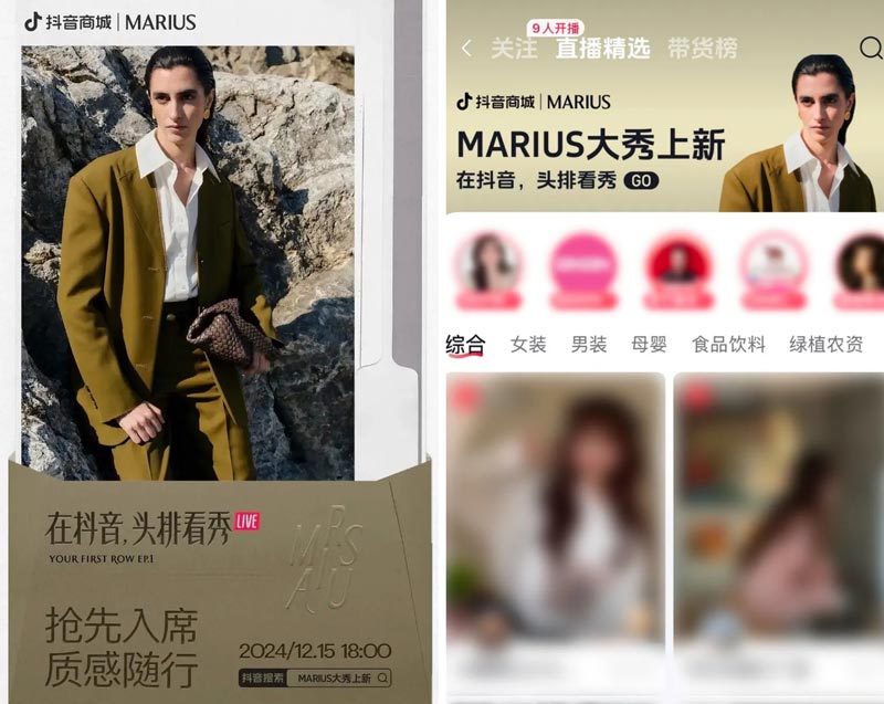 今晚18:00,歡迎大家打開抖音商城,點擊“直播精選”頻道,頂部banner一鍵直達;或直接在抖音搜索“Marius大秀上新”即可進入大秀直播間,一起觀賞這場時尚與文化的雙重盛宴。