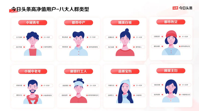 公開(kāi)資料顯示,今日頭條月活躍用戶(hù)高達(dá)數(shù)億,在數(shù)量和質(zhì)量?jī)蓚(gè)維度上,平臺(tái)的活躍用戶(hù)排名、用戶(hù)留存都處于領(lǐng)先地位。其中,今日頭條 30-50歲用戶(hù)超 65%,中高消費(fèi)能力占比近半,城市用戶(hù)占比接近 7 成,匯集高線(xiàn)、高知、高消費(fèi)群體,在品牌所熟悉的八大人群中,“三高”人群是擁有穩(wěn)定生活的社會(huì)中堅(jiān)力量,是具備高消費(fèi)能力的家庭影響力用戶(hù)。