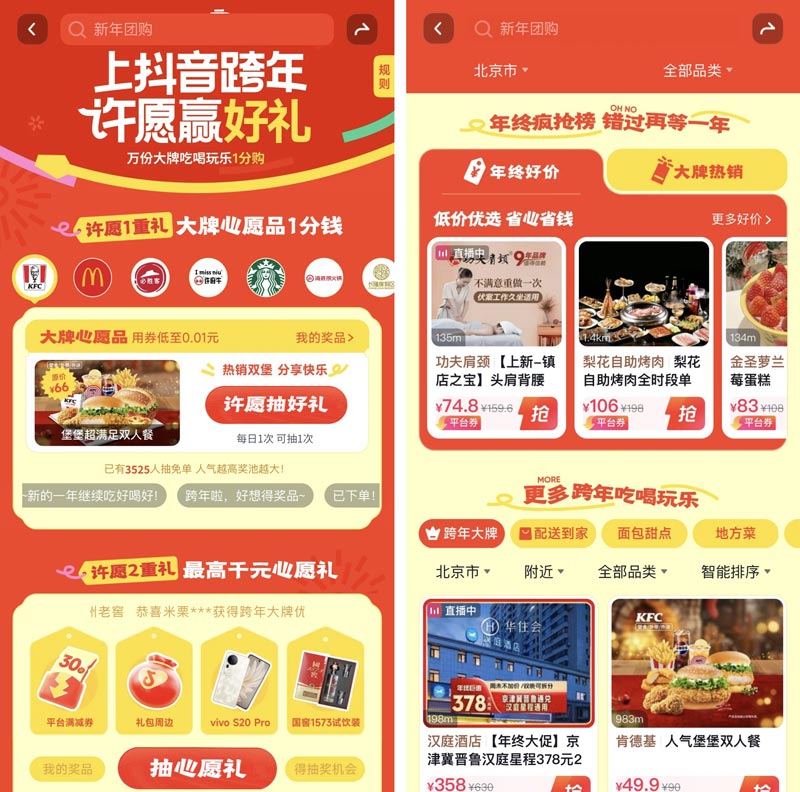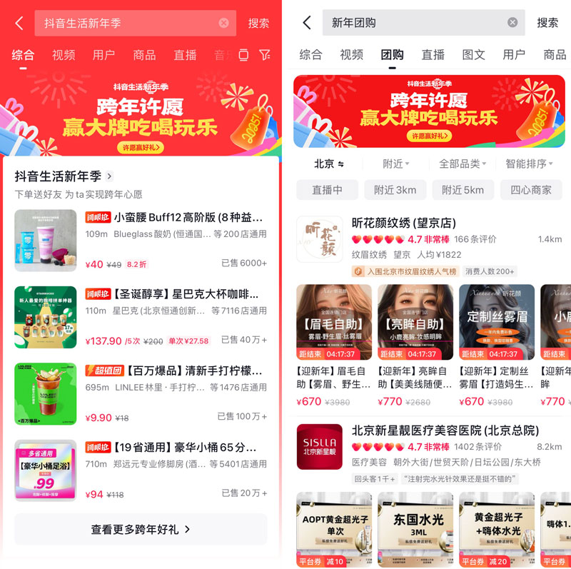 現在打開抖音搜索「抖音生活新年季」或「新年團購」話題活動,解鎖更多超值福利,“飲”領新年好生活!這個新年,讓我們相約抖音生活服務,解鎖更多驚喜,發現更多溫暖!