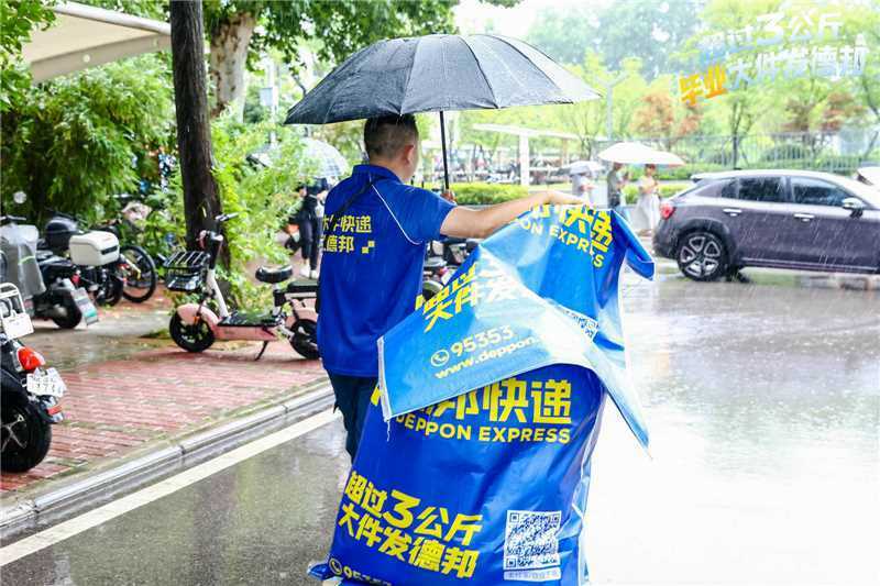 六月的武漢大學,暴雨傾盆,宿舍樓下德邦快遞員披著“大藍袋”防水戰袍,在積水中接力搬運貼滿標簽的紙箱;清華大學的操場上,“小飛象”快遞箱和畢業長跑的學生們一起出發;同濟大學嘉定校區的樹蔭下,快遞員正用氣泡膜仔細包裹一臺吉他;中山大學聚寶屋驛站內,學生們圍著堆成小山的定制大黃箱掃碼抽獎……這個夏天,德邦快遞用貼心服務守護畢業生的夢想與回憶。