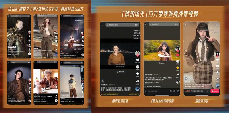 「琥珀流光」一經推出便吸引眾多明星、紅人、達人共創參與,大地色系與淺灰藍的碰撞引領今秋穿搭新風潮,其背后寓意“上升之美”的生機感與療愈感,引發眾多用戶情感共鳴。