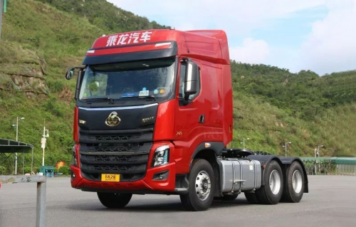 乘龍H7 6×4牽引車搭載520馬力發動機,扭矩可達2460N·m,搭配法士特12JSDX240TA手動變速箱(最高檔為超速檔,速比0.78)。后橋采用485后橋,速比3.071,“大馬力+小速比”的設計主要運用于高速物流運輸市場,也是目前長途標載物流運輸市場常見的配置。輪胎采用米其林295/80R22.5尺寸輪胎,前輪配備鋁合金輪圈,并且采用康邁的輪端。后橋配備空氣懸架,并且帶有電動高度調節功能。為適應長途運輸需要,該車搭載了600+400L鋁制油箱,總計容量達1000L,可大幅減少加油次數,提高運輸時效性。